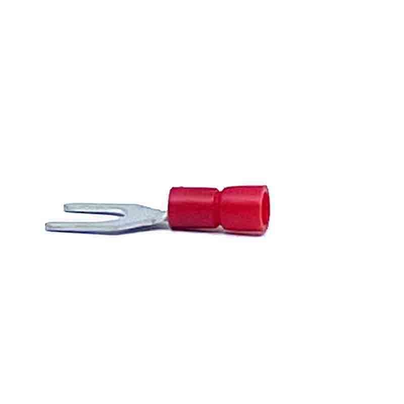 Izolovaná Cu lisovacia vidlice pocínovaná sa používa pre ukončenie všetkých typov lankových vodičov. Podľa priemeru otvoru pre skrutku "Mx" umožňuje bezpečné a pevné pripojenie vodiča ku skrutkovému kontaktu.