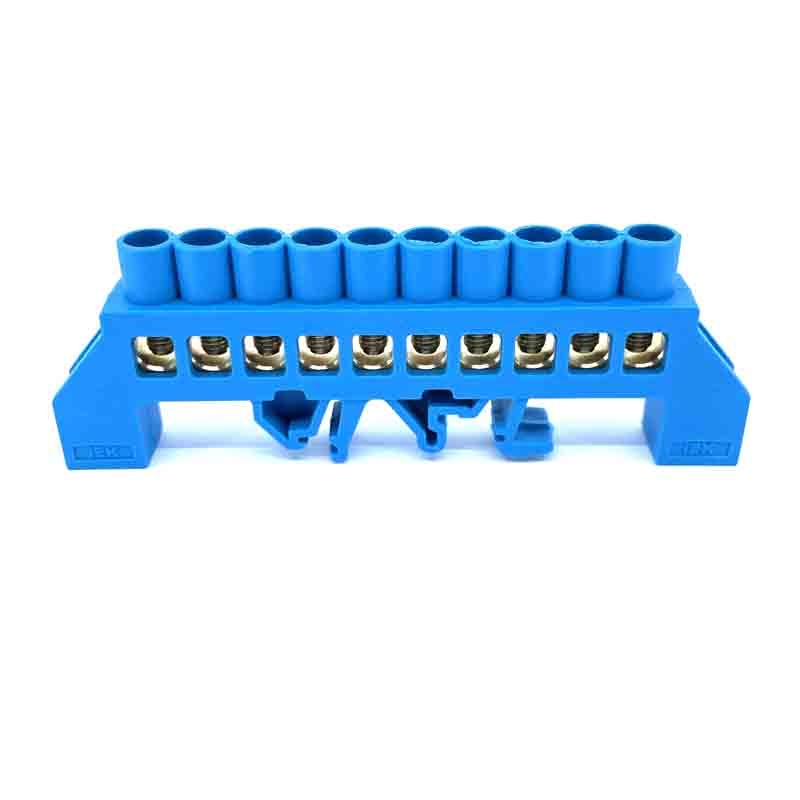 Cu-mostík na neutrálne vodiče (N) izolovaný, modrý. Upevniteľný na montážnu dosku 35x7.5.