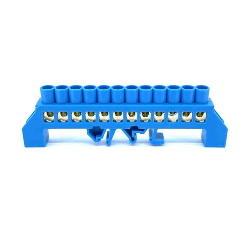 Cu-mostík na neutrálne vodiče (N) izolovaný, modrý. Upevniteľný na montážnu dosku 35x7.5.