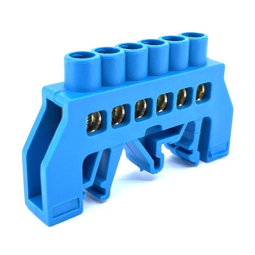 Cu-mostík na neutrálne vodiče (N) izolovaný, modrý. Upevniteľný na montážnu dosku 35x7.5.