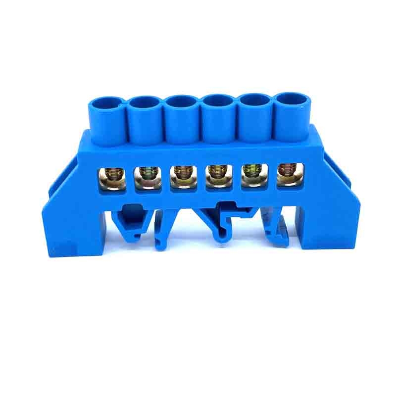 Cu-mostík na neutrálne vodiče (N) izolovaný, modrý. Upevniteľný na montážnu dosku 35x7.5.