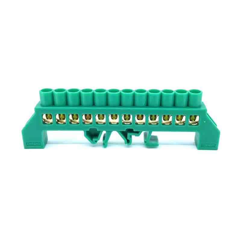 Cu-mostík na ochranné vodiče (PE) izolovaný, zelený. Upevniteľný na montážnu dosku 35x7.5.