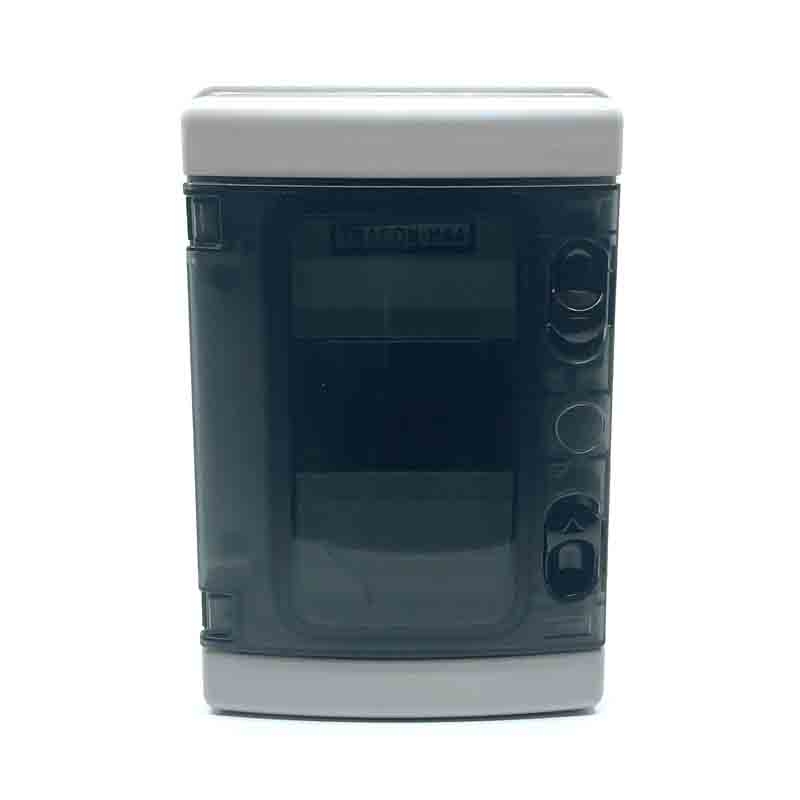 Rozvodná skriňa nadomietková 1×4 modul s priehľadnými dvierkami.