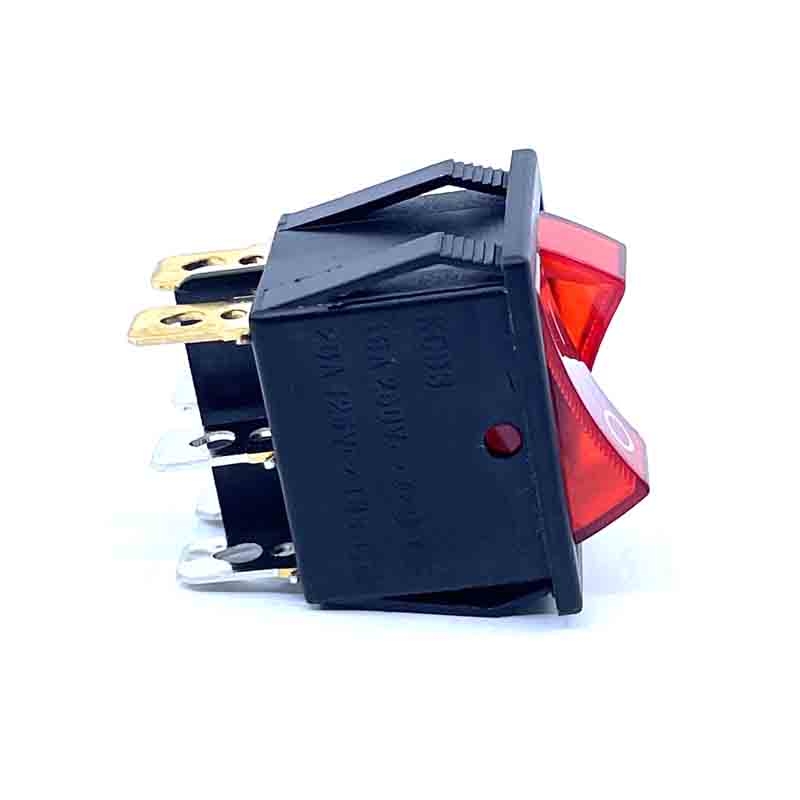 Kolískový vypínač ON-OFF, 2 obvody, červený, 16A, 250V, 0-I