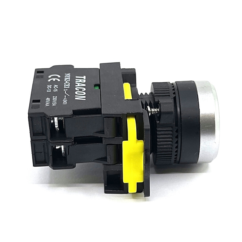 Podsvietený tlačidlový spínač odolný proti vibráciám s kontakty 1xNO (spínací), menovitým napätím 230V a menovitým prúdom 5A.