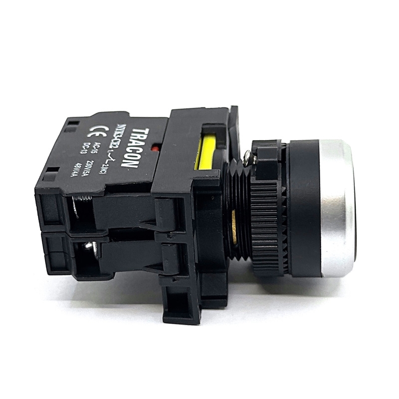 Podsvietený tlačidlový spínač odolný proti vibráciám s kontakty 1xNO (spínací), menovitým napätím 230V a menovitým prúdom 5A.