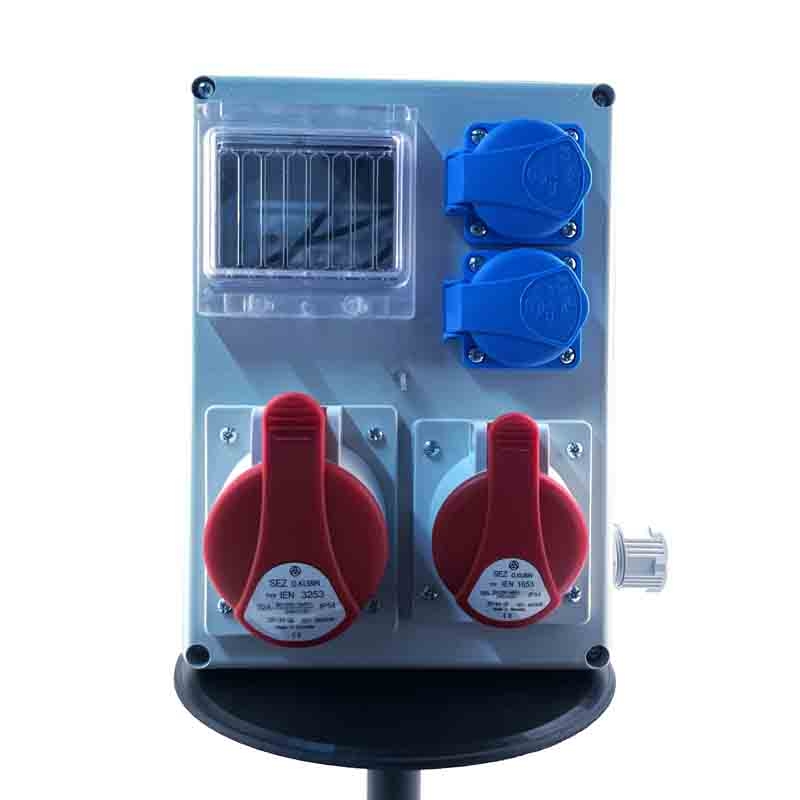 Zásuvková rozvodnica 1xIEN 3253+1xIEN1653+2x230V - ROS-I 1603A. Rozvodnica je určená ako súčasť pevného prívodu v obyčajnom vnútornom i vonkajšom prostredí v rozmedzí teplôt od -25 ° C do + 40 ° C. Možno ju využiť v priemyselných rozvodoch, na staveniskách, a pod.