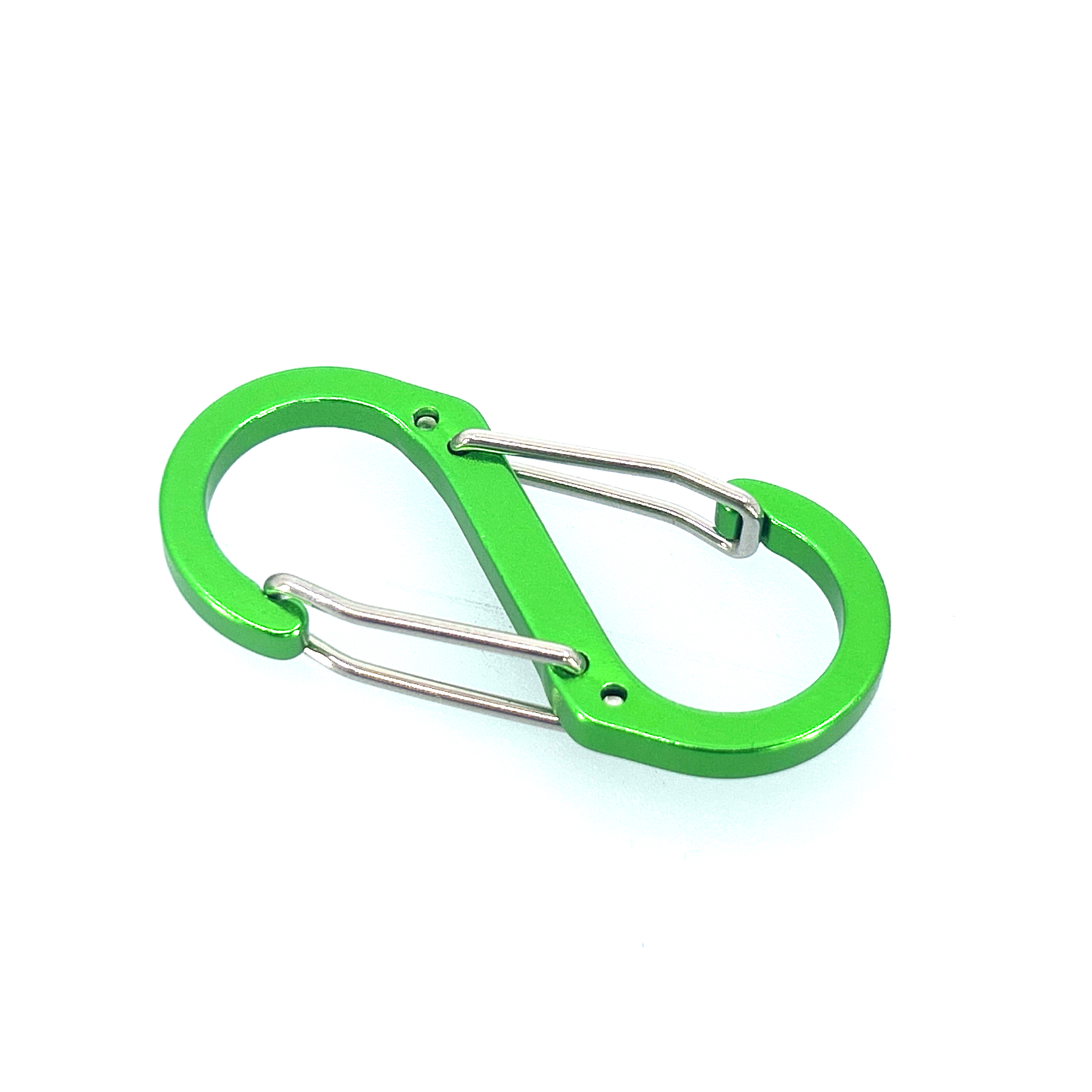 Okrasná karabína v tvare S-háku s poistkou - zelená