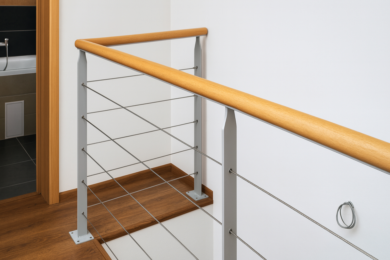 Elegantná nerezová lanová výplň pre balkóny, terasy a schodiská. Predlisované koncovky oko/oko z nerezu skrátia čas montáže, zabezpečia čistý vzhľad a dlhú životnosť v interiéri aj exteriéri.