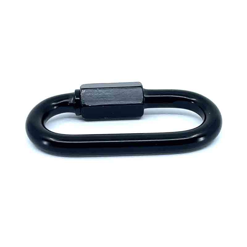 Karabína s maticou čierna, je vhodná na spojenie reťazových článkov a zavesenie ľahkých bremien.