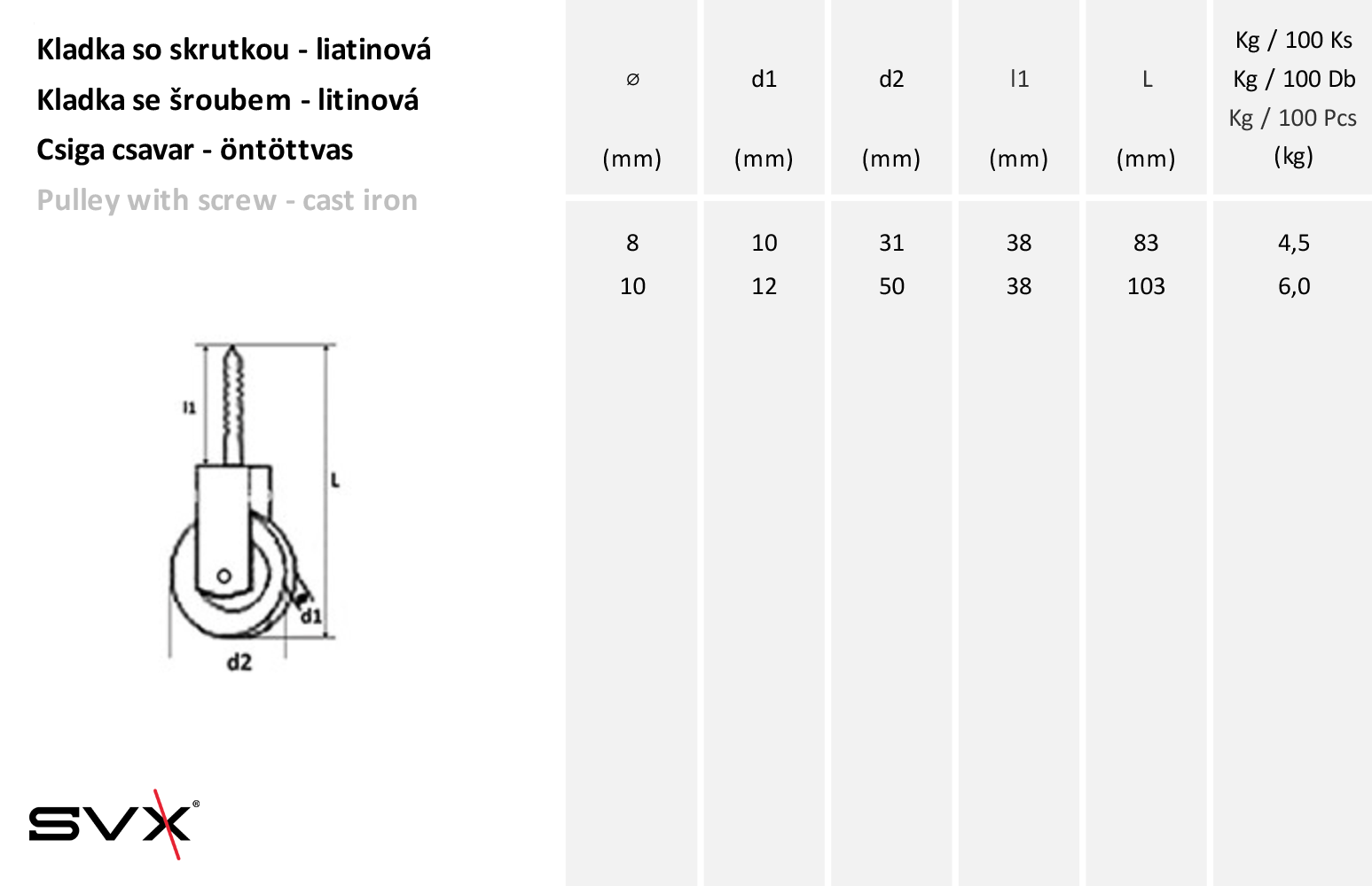 Pozinkovaná liatinová kladka s vrutom je jednoduchá oceľová kladka. Zobraziť viac