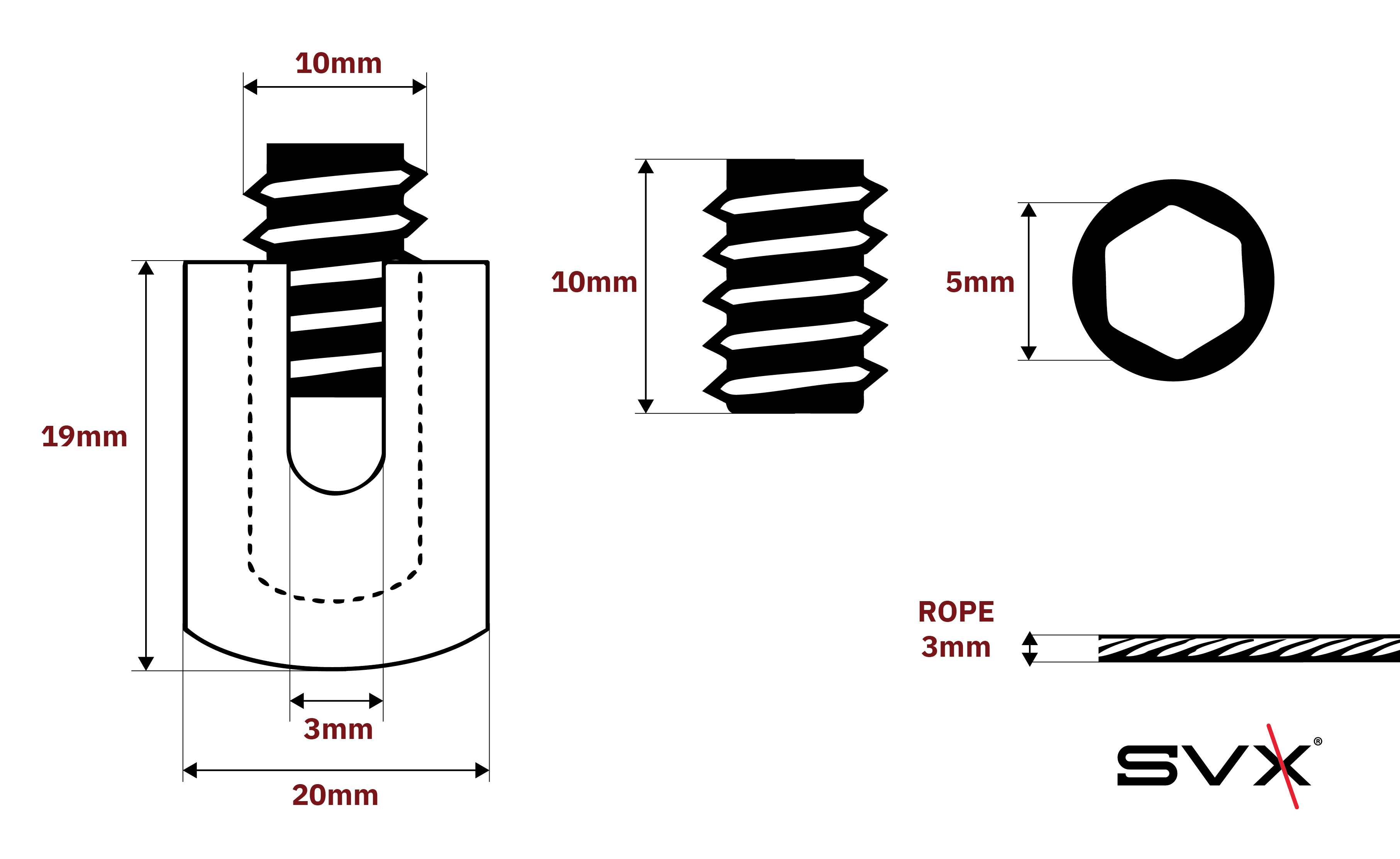 Skrutka so závitom pre spoľahlivý stisk bez poškodenia lana