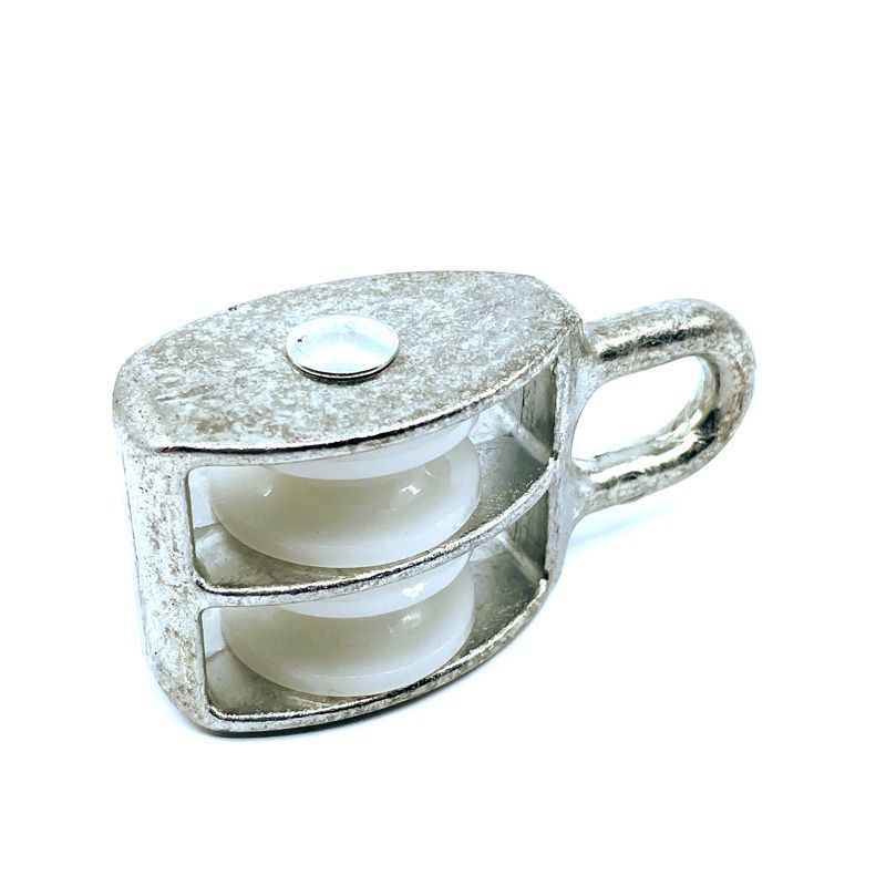 Kladka dvojkoliesková pevná so silonovými kolieskami je pozinkovaná. Oceľová kladka je s okom a dvoma cievkami. Cievky sú vyrobené z nylonu.