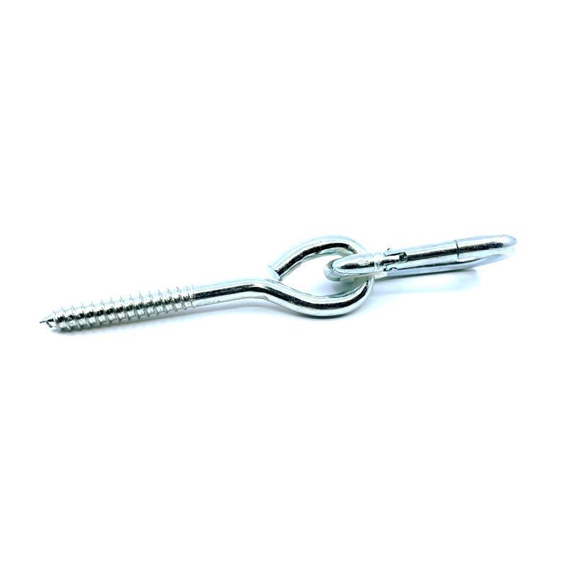 Hák hojdačkový s vrutom a karabínou pozinkovaný je špeciálny hák pre bezpečné zavesenie hojdačky (hojdacej siete, lezeckej siete, lezeckého lana). Tento hák s karabínou je vyrobený z galvanicky pozinkovanej ocele. Karabína má teflónový krúžok pre hladší pohyb a zabráni vydávaniu nežiadúcich zvukov „vŕzganiu“ pri používaní.