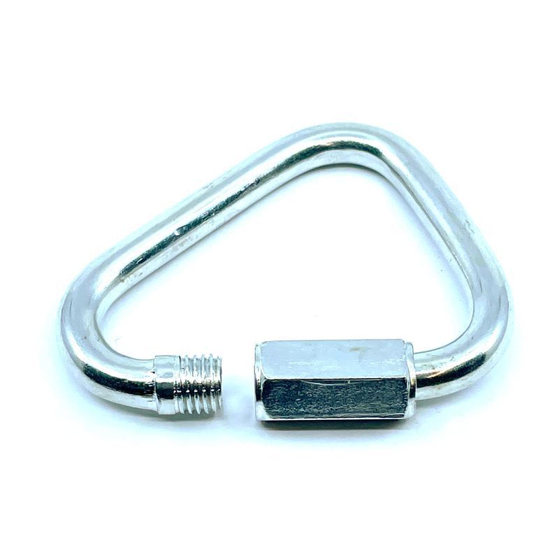 Trojuholníková karabína s maticou sa používa ako spojovací článok pre pevné spojenie popruhu s lanom, alebo s reťazou.