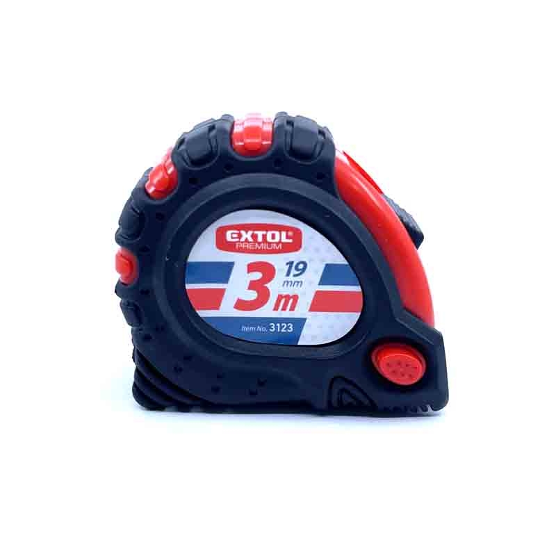Zvinovací pogumovaný meter s magnetom je 3 metre dlhý, 19 milimetrov široký a má 3 brzdy. Pogumované puzdro a bežec nám poslúži pre lepší úchop a odolnosť. Tri brzdy umožňujú pohodlne krátkodobo zabrzdiť pás. Meter disponuje kovovým klipom, vďaka ktorému meter zavesíme za opasok. Meter má samonavíjací mechanizmus, ktorý je vybavený spoľahlivou a silnou pružinou.