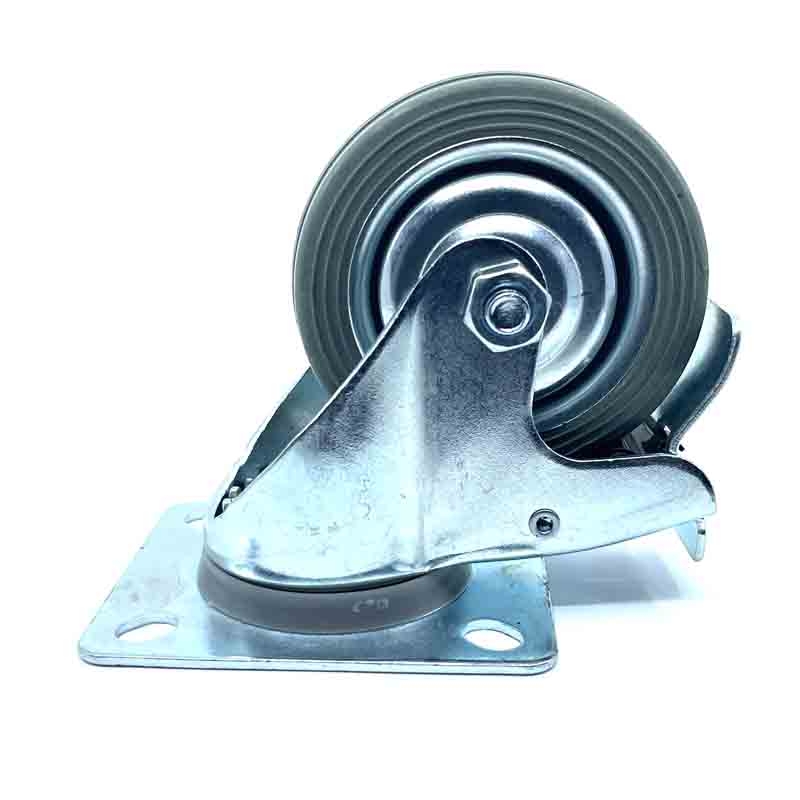 - Brzda zadná - nachádza sa podľa smeru pohybu za rolovacím kolieskom. Používa sa na ploché podvozky manipulačných vozíkov / plošinové vozíky/.