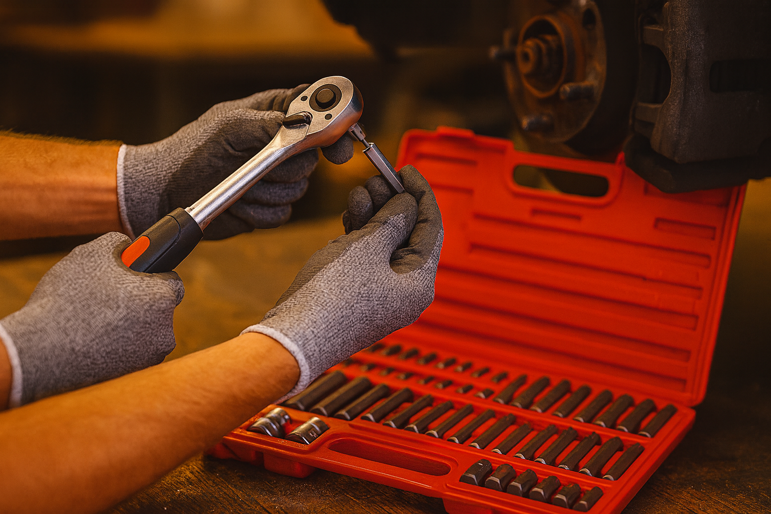 - 2 pohony v jednej sade: 3/8″ aj 1/2″ – kompatibilné s bežnými račňami a momentovými kľúčmi.