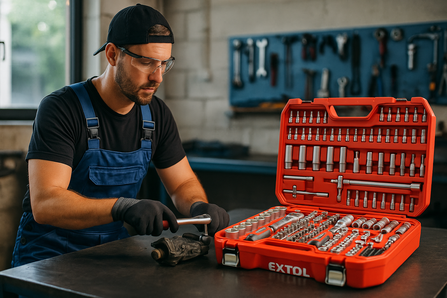 Prémiová 172-dielna gola sada EXTOL PREMIUM pokrýva všetky bežné aj náročné práce v dielni, servise aj domácnosti. Tri štandardné upínania (1/4", 3/8", 1/2"), račne s jemným chodom (45 zubov), široký rozsah hlavíc vrátane TORX/E-profilov, bitov a príslušenstva v odolnom kufri – všetko z chróm-vanádiovej ocele pre vysokú životnosť a presné dosadnutie.