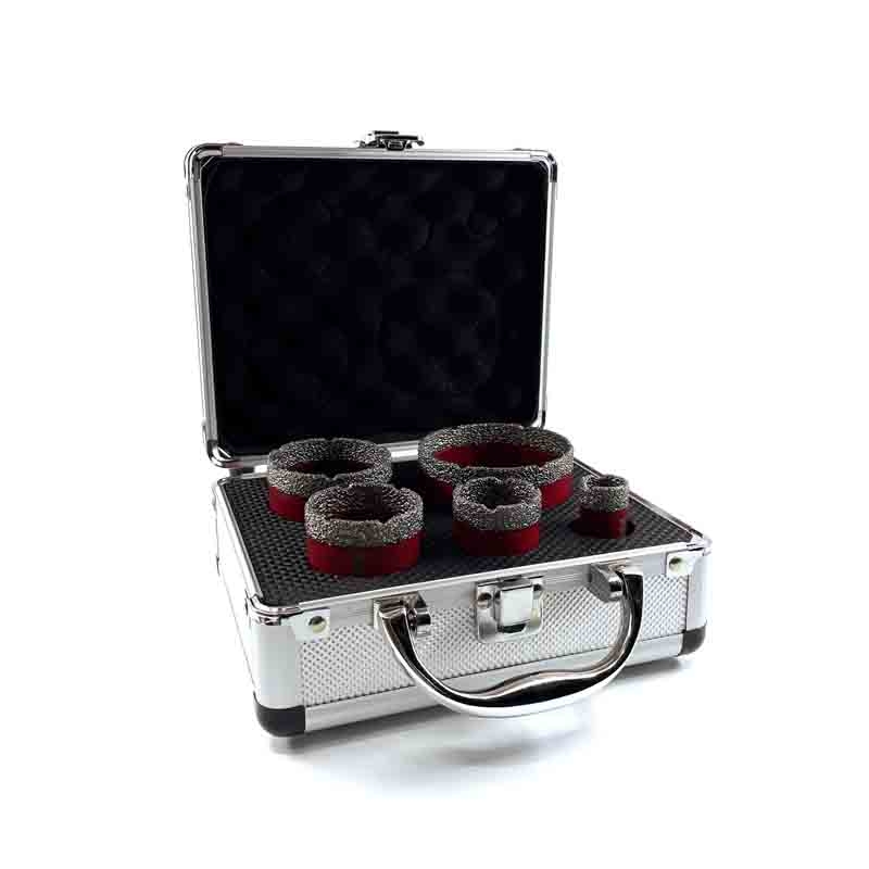 Vyrezávacia sada diamantových vrtákov DCB11 - 20 - 35 - 45 - 55 - 72 mm / M14 - v praktickom kufríku. Tieto vrtáky zaručujú rýchlosť vŕtania do najtvrdších materiálov. Bočné prieduchy urýchľujú vŕtanie a odstraňovanie materiálu.