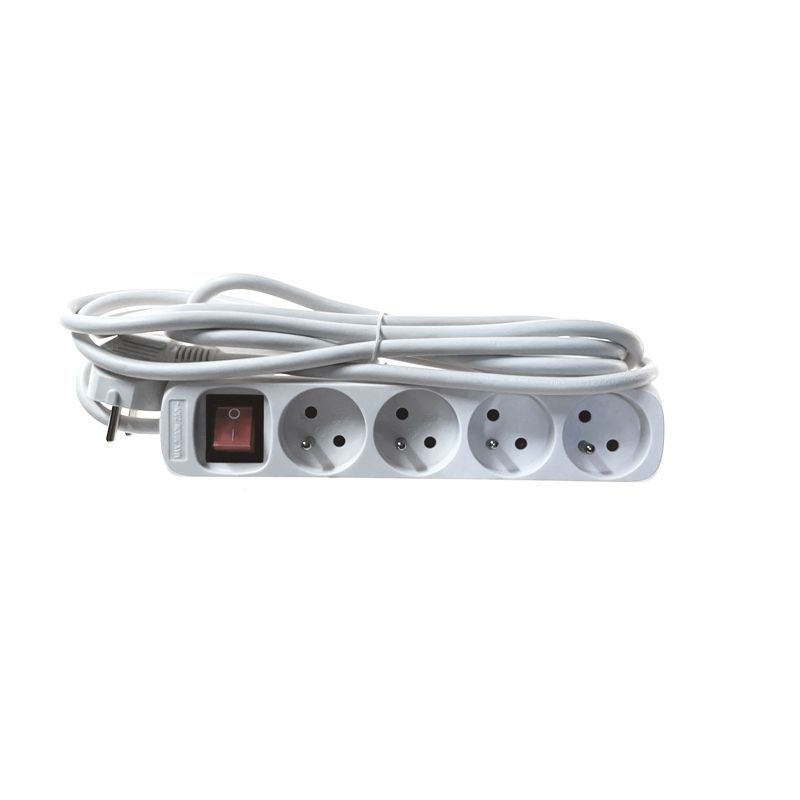 4 zásuvky 5m 3G1,5 Predlžovací kábel 16A biely s vypínačom