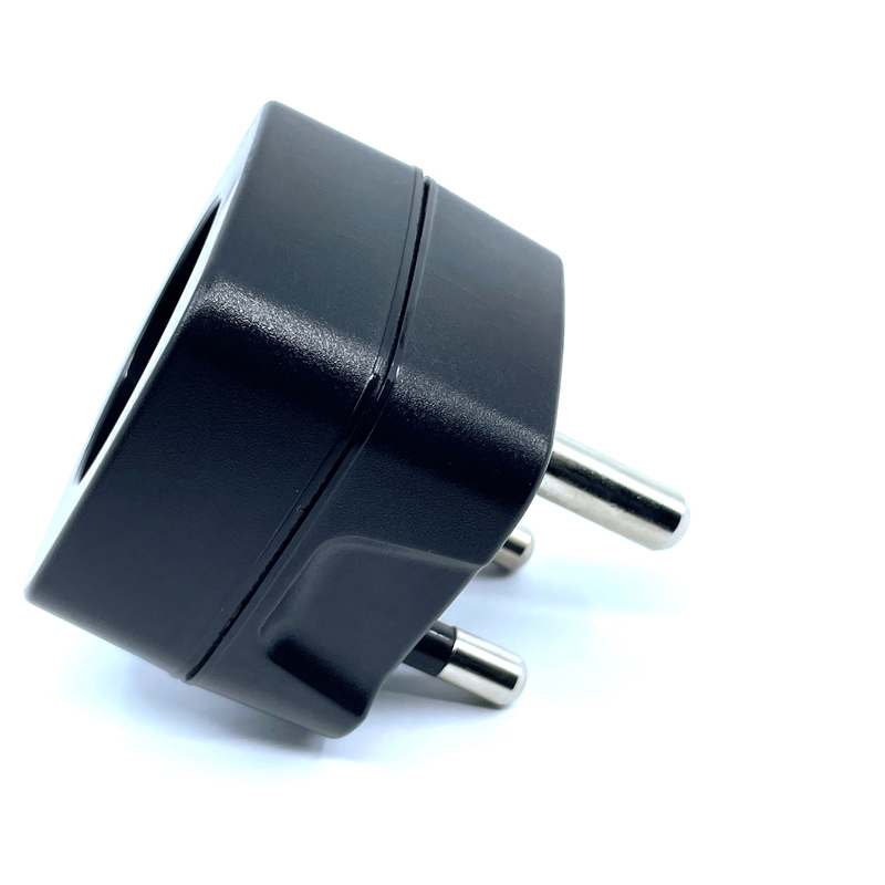 Cestovná zástrčka s ochranným kontaktom na pripojenie elektrických prístrojov s nemeckým zásuvným systémom ochranných kontaktov, pre zásuvky v Južnej Afrike. Adaptér je ideálny pre nabitie prístrojov na cestách, alebo dovolenke.