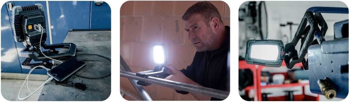 LED pracovné svetlo s upínacím zariadením ponúka vysokú flexibilitu a všestranné využitie v dielňach, pri montáži alebo pre domácich majstrov. Vďaka stabilnému klipovému systému s upínacou šírkou až 55 mm ho možno ľahko pripevniť na rôzne povrchy, ako sú pracovné plochy, rúry či panely.