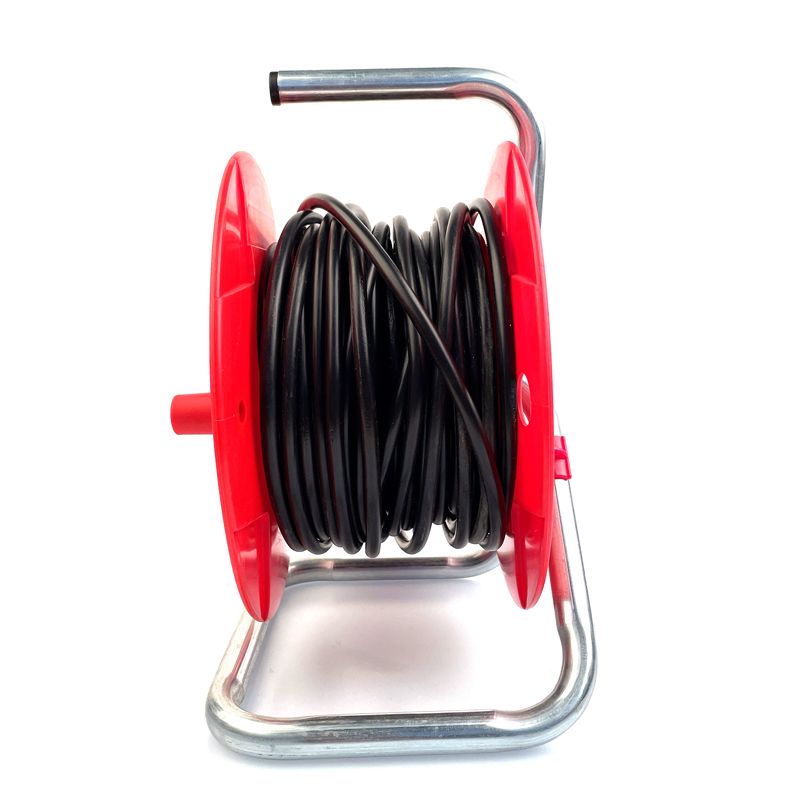 Praktický predlžovací kábel na bubne určený na využitie v interiéri. Telo bubna je vyrobené zo špeciálneho plastu a umiestnené na stabilnom pozinkovanom ráme. Ergonomicky tvarovaná rukoväť umožňuje jednoduché prenášanie. Kábel s dĺžkou 50 metrov poskytuje dostatočný dosah pre domáce a kancelárske použitie.