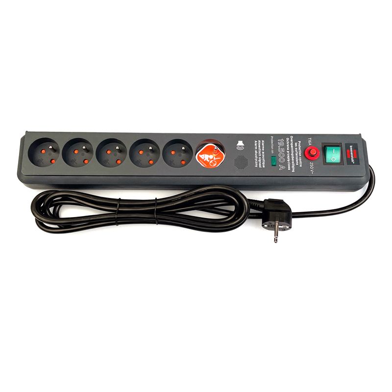 Zásuvková lišta so 6 zásuvkami a prepäťovou ochranou chráni vaše cenné prístroje pred náhlymi výkyvmi napätia až do 19.500 A. Usporiadanie zásuviek pod uhlom 45° umožňuje pohodlné zapojenie aj uhlových vidlíc. Osvetlený bezpečnostný vypínač umožňuje dvojpólové zapínanie a vypínanie.