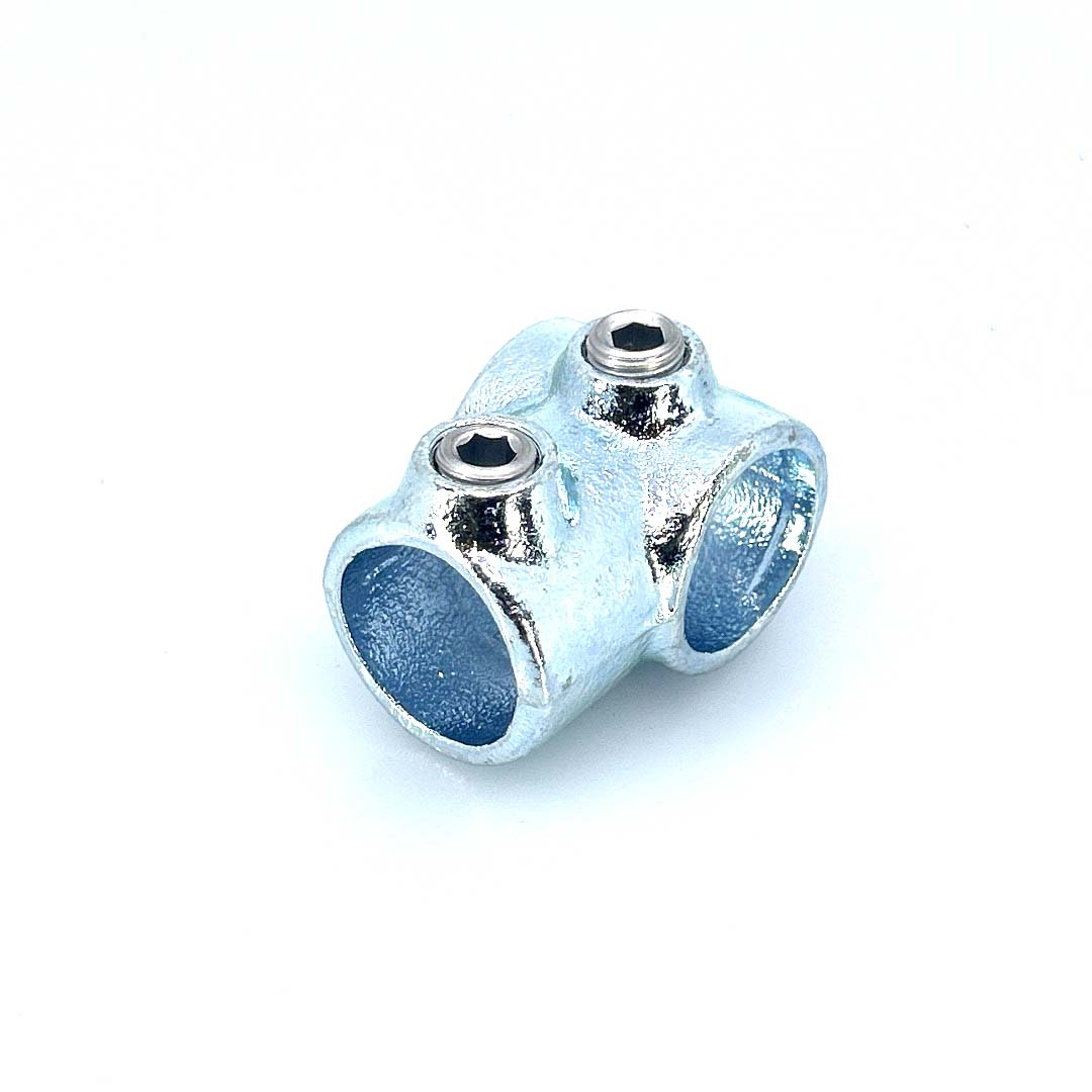 Spojovací článok obsahuje 2 vetvy, čo znamená, že je možné do neho zapojiť rúrky z dvoch strán. Neodporúča sa použiť ho ako podporu. Na tento účel slúži podstavec.