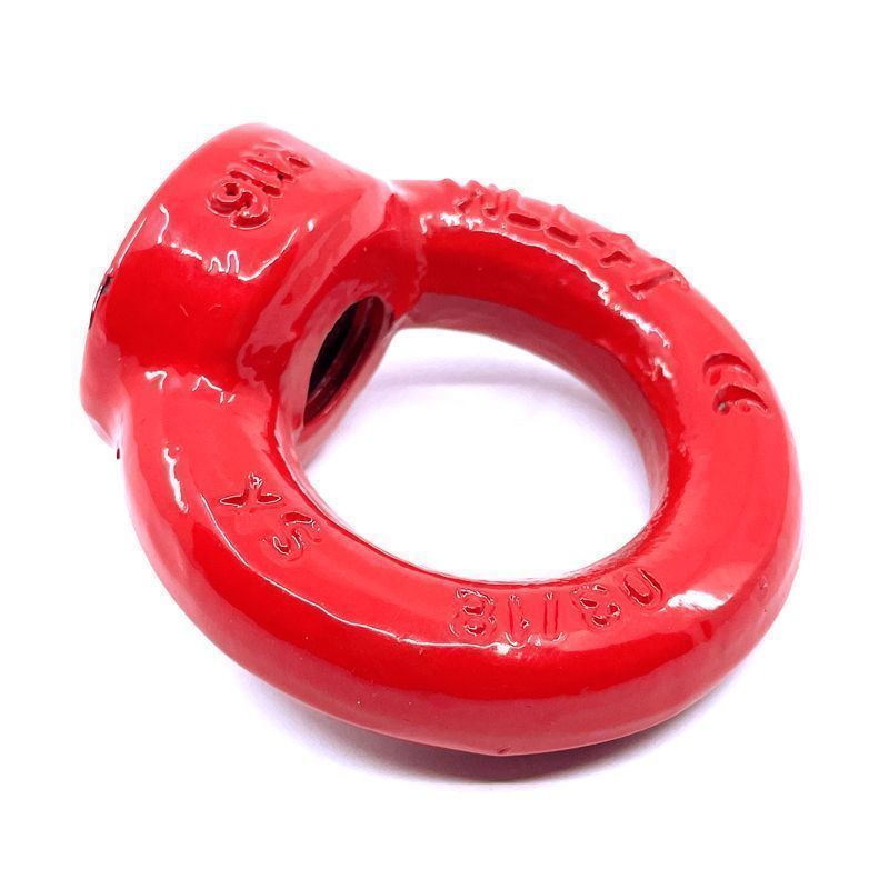 Závesná matica DIN 582 pevnostnej triedy 80 je vyrobená z vysoko kvalitnej ocele a jej povrchovou úpravou je komaxit v červenej farbe. DIN 582 sa používa na montáž a následnú manipuláciu s obrábacími strojmi a kolesovou technikou. Závesná matica je často súčasťou viazacích prostriedkov a zariadení na manipuláciu s nákladom. Používa sa ďalej na zdvíhanie ťažkých častí a zostáv strojov, ťahanie bremien, ale je možné ju použiť aj v spojení s kotevnou skrutkou. DIN 582 má krúžok, ktorý je určený na uchopenie častí a zostáv počas ich prepravy, montáže a demontáže. Závesná matica je využiteľná v mnohých zámočníckych a stavebných projektoch. Ide o normovaný spojovací materiál s metrickým závitom a štandardným stúpaním. Správny dizajn, starostlivé kovanie, precízne kontrolované kalenie a temperovanie poskytujú maximálnu pevnosť bez nadmernej hmotnosti a objemu.