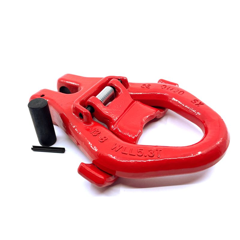 Kontajnerový hák pevnostnej triedy 80 je vyrobený z vysoko kvalitnej ocele a jeho povrchovou úpravou je KOMAXIT v červenej farbe. Používa sa na zdvíhanie kontajnerov na kontajnerový nakladač. Tento hák je vybavený ochrannou klapkou, ktorá slúži na zaistenie proti vykĺznutiu háku z úchytu na kontajneri. Správny dizajn, starostlivé kovanie, precízne kontrolované kalenie a temperovanie poskytujú maximálnu pevnosť bez nadmernej hmotnosti a objemu.