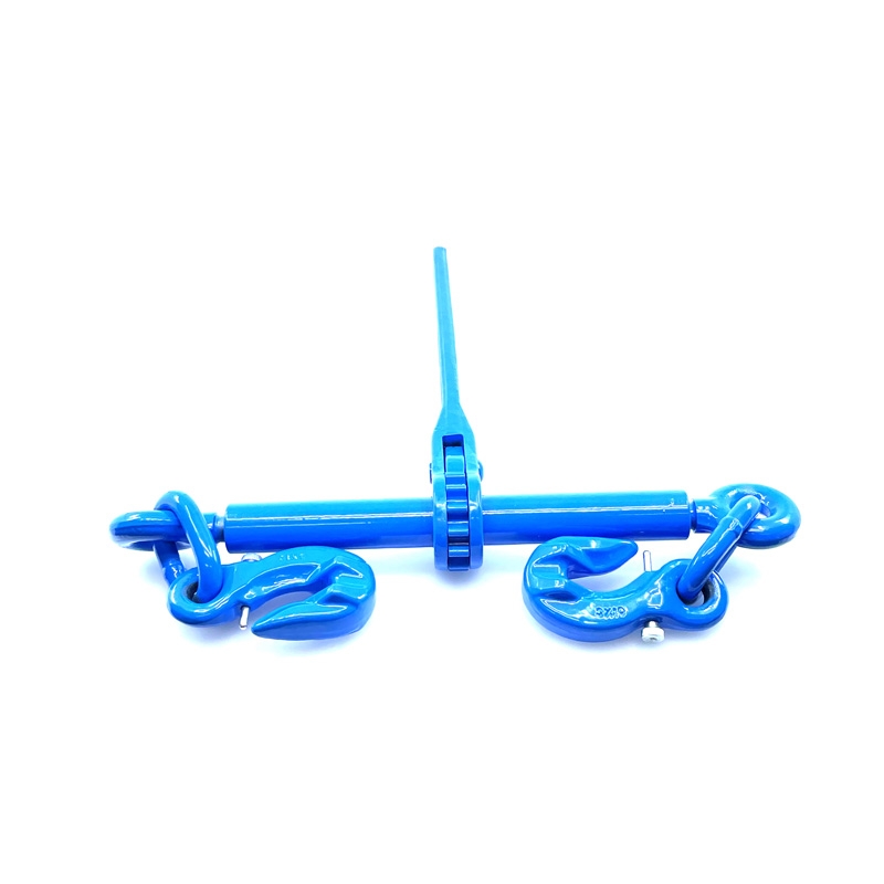Račňový napínač HÁK-HÁK pevnostnej triedy 100 je vyrobený z vysoko kvalitnej ocele a jeho povrchovou úpravou je komaxit v modrej farbe. Používa sa na bezpečné zaistenie ťažkých bremien pri preprave cestnou, železničnou, leteckou či lodnou dopravou. Tento napínač disponuje bezpečnostnou poistkou a nie je vhodný na zdvíhanie bremena. Dlhá strana napínača sa dá bezpečne skrátiť pomocou skracovacej špičky. Reťazový račňový napínač upneme na závesný bod nákladu, dĺžku reťaze upravíme pomocou skracovacích hákov a pomocou držadla račňového napínača pritiahneme reťaz. Správny dizajn, starostlivé kovanie, precízne kontrolované kalenie a temperovanie poskytujú maximálnu pevnosť bez nadmernej hmotnosti a objemu.