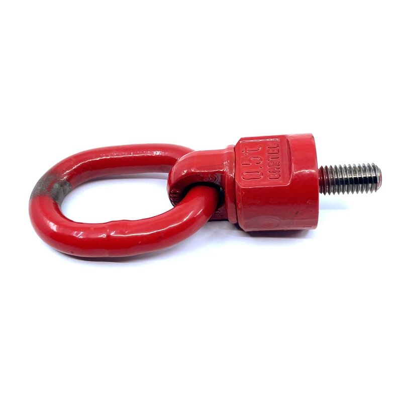 Otočné závesné oko pevnostnej triedy 80 je vyrobené z vysoko kvalitnej ocele a jeho povrchovou úpravou je komaxit v červenej farbe. Využíva sa na zdvíhanie a spúšťanie bremien v spojení s textilným pásom. Veľkou výhodou otočného závesného oka je to, že oko je otočné o 360° aj pod zaťažením. Dáke je vysoko odolné, polohovateľné v rozsahu 180° a je možné ho upevniť pomocou šesťhranného alebo francúzskeho kľúča. Vďaka šesťhrannému telu sa ľahko montuje a demontuje. Správny dizajn, starostlivé kovanie, precízne kontrolované kalenie a temperovanie poskytujú maximálnu pevnosť bez nadmernej hmotnosti a objemu.