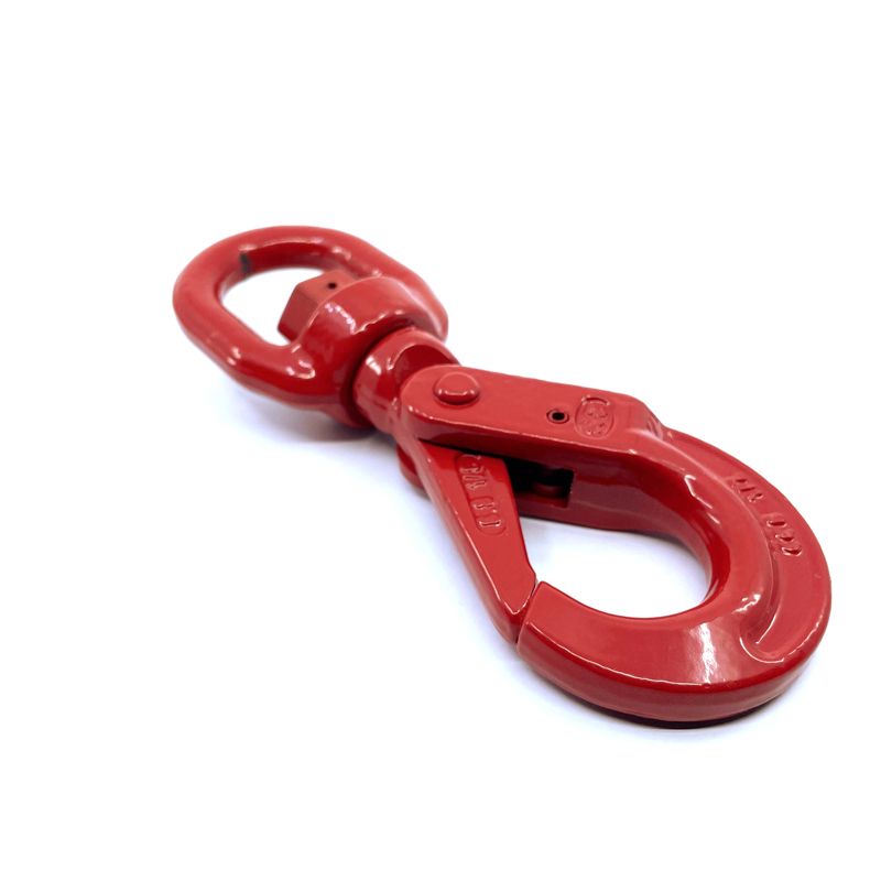 Samozaisťovací otočný hák pevnostnej triedy 80 je vyrobený z vysoko kvalitnej ocele a slúži ako spojovací komponent pre stavebný a lesnícky priemysel. Jeho povrchovou úpravou je KOMAXIT v červenej farbe. Používa sa predovšetkým v spojení s lanom alebo reťazou na zdvíhanie či spúšťanie bremien. Správny dizajn, starostlivé kovanie, precízne kontrolované kalenie a temperovanie poskytujú maximálnu pevnosť bez nadmernej hmotnosti a objemu. Tento hák nám umožňuje otočenie nákladu o 360° stupňov, preto je manipulácia s nákladom pohodlnejšia a presnejšia.