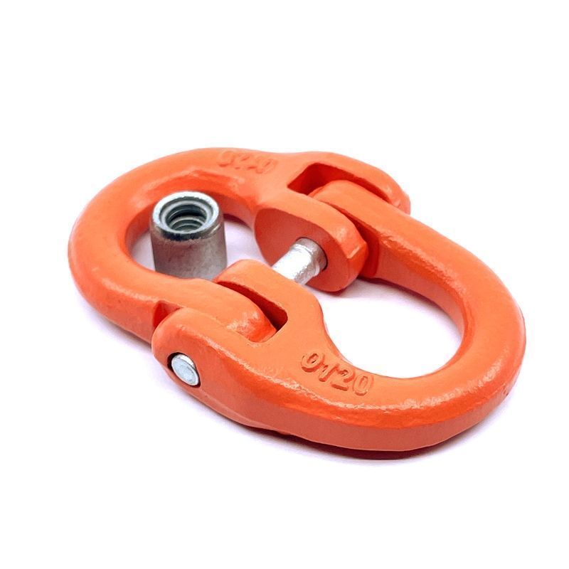 Spojovací článok na reťaze pevnostnej triedy 100 je vyrobený z vysoko kvalitnej ocele a jeho povrchovou úpravou je komaxit v oranžovej farbe. Tento spojovací článok je vhodný pre všetky typy reťazových závesov. Používa sa na spojenie medzi reťazou a hlavou, oceľovým lanom a hlavou, hákom s okom a lanom alebo hákom s okom a reťazou. Spojovacie články na kotvenie nákladov disponujú rôznou nosnosťou. Tento článok sa skladá z dvoch kovaných častí - jedného čapu a bezpečnostnej poistky. Spojovací článok umožňuje rýchlu a jednoduchú montáž a je vhodný iba pre priamy ťah. Správny dizajn, starostlivé kovanie, precízne kontrolované kalenie a temperovanie poskytujú maximálnu pevnosť bez nadmernej hmotnosti a objemu.